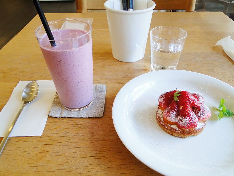 ブルーベリースムージーといちごタルト