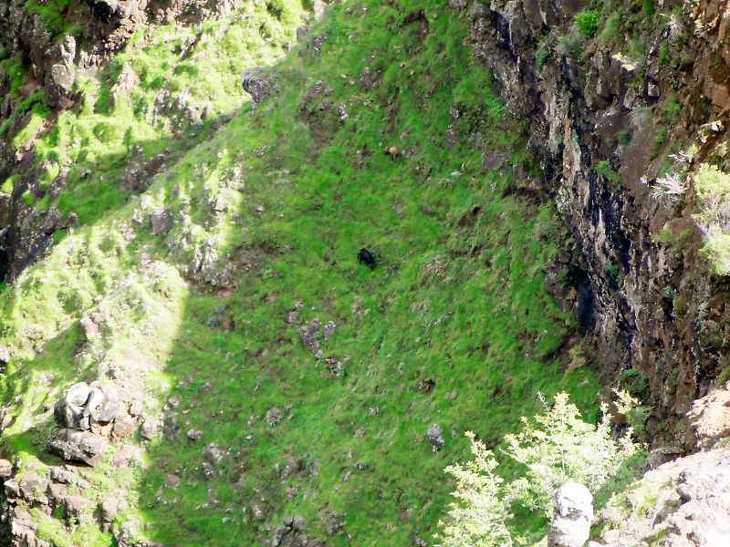 渓谷の斜面というより断崖に野生のヤギを