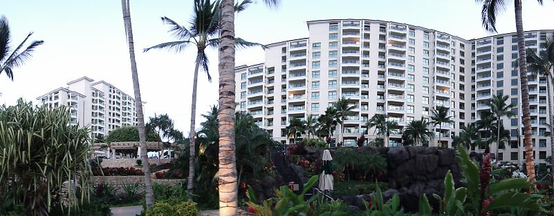 マリオット・コオリナ・ビーチ・クラブ、玄関ロータリー。右がコナタワー、右がナイアタワー