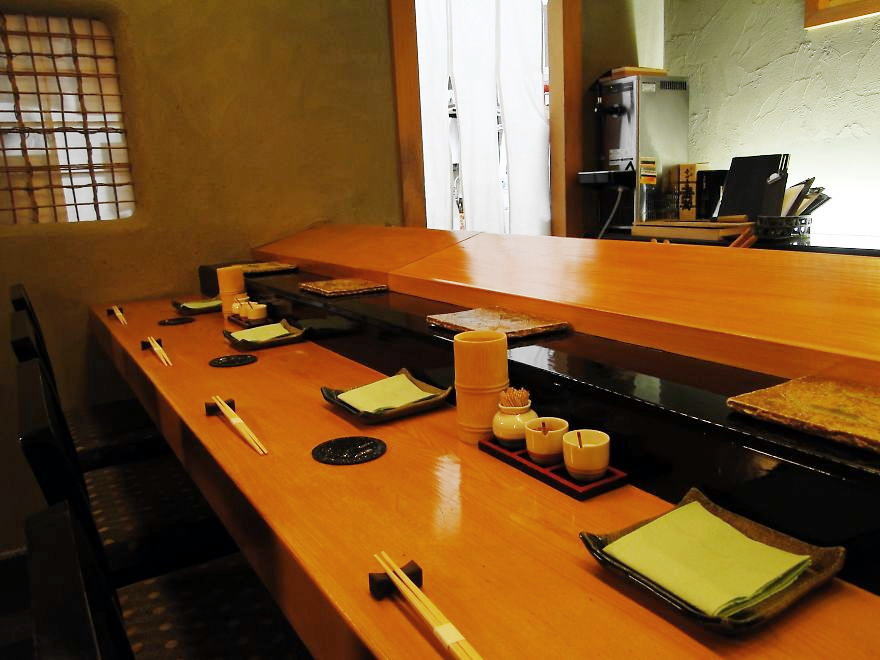 L字型のカウンターに8席ほどの小じんまりとしたお店です。