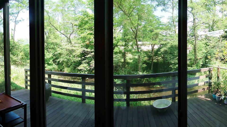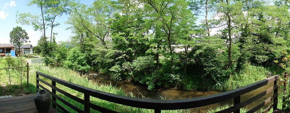 湯川に面したテラス。