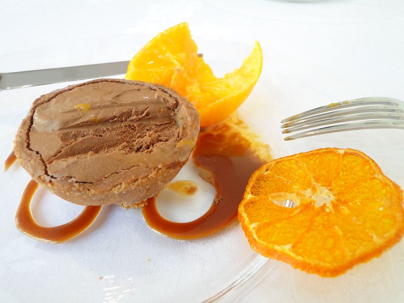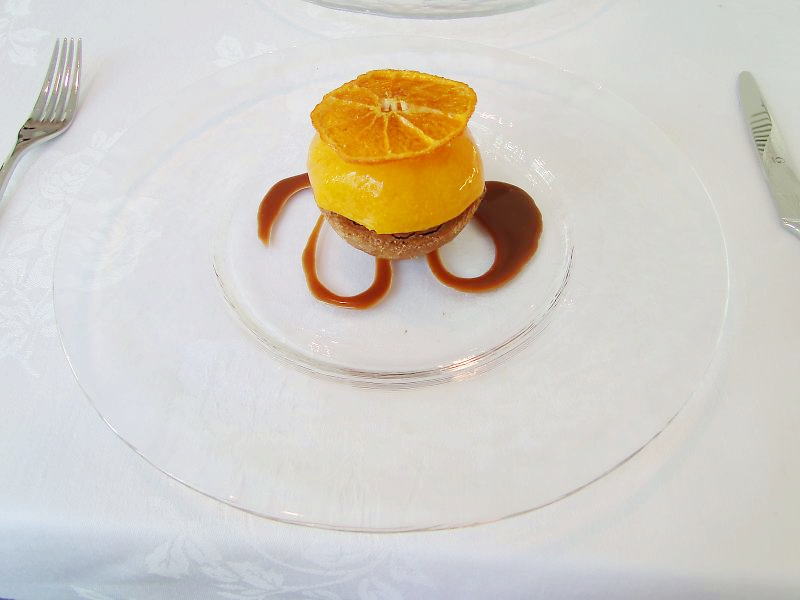 デザート:タルトのショコラ、ミカンのコポート、ソースキャラメル