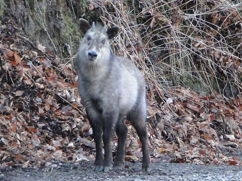野鳥の森でバッタリ出会ったニホンカモシカ